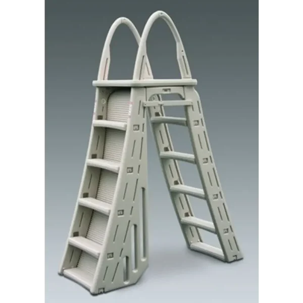 This pool ladder offers an esthetically pleasing contemporary design in its beautiful warm gray color. It has curved side rails designed with strength in mind. Additionally, the inner side rails include integrated side barriers to prevent entry behind the ladder.