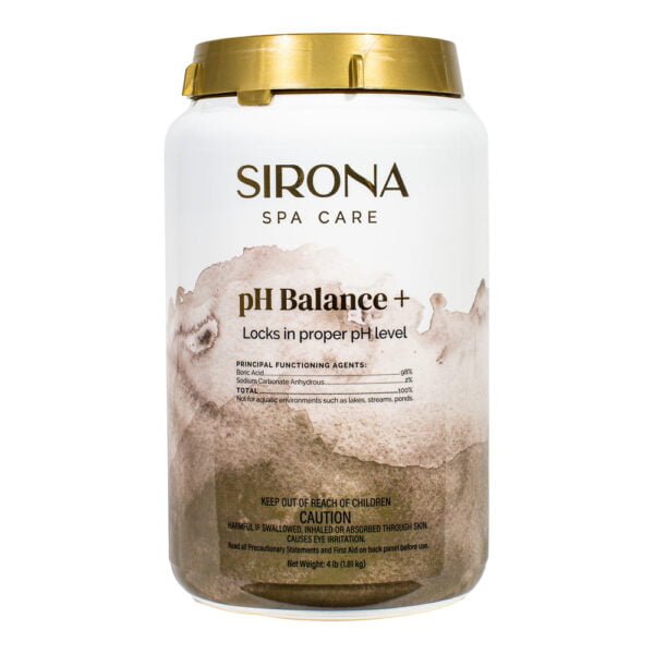 Sirona Spa Care pH Balance + is the must have chemical to lock in a proper pH level in your spa. This product will last from refill to refill, and will lower the amount of regular pH adjustment treatments. It is compatible with chlorine, bromine, ozone, and mineral purification systems, and it can even be used with hard water sources. Using this product to help maintain properly balanced water will prevent staining, scaling, equipment corrosion, and skin and eye irritations.